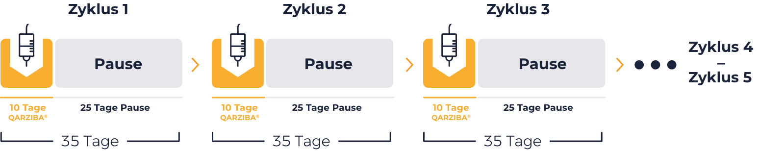 QARZIBA® Langzeit-Infusion jeweils von Tag 1-10